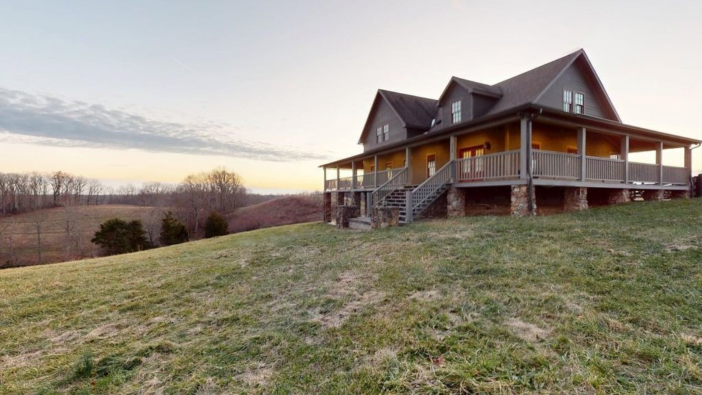 This exceptional custom built on 19 +/- Acres 3 bedroom, 3.5 bath home offers over 4,700 sq ft of finished living space, including a full walkout basement and expansive wrap around porch with sweeping countryside views. The main level features a spacious kitchen with wood center island, stainless steel appliances, wall microwave and convection oven, dishwasher, electric range, and side by side refrigerator. A formal dining area lives between the kitchen and the living room includes a brick wood burning fireplace and French doors leading to the wrap around covered porch. The primary suite offers private porch access, a travertine tile walk in shower, double vanity, and custom walk in closet. A mudroom with vintage service sink, built in cabinetry, and laundry area adds convenience. The upper level includes an open loft area, two large guest bedrooms with multiple closets, and a full guest bath with tub/shower combination and linen closet. The finished walkout basement provides generous open living space, a full bath, stone fireplace with wood burning insert, mechanical room, and French doors to a lower patio. Exterior features include black board fencing, concrete driveway, dog kennel, and both well and city water. Enjoy peaceful country living just minutes from downtown Olive Hill, approximately 80 miles to Lexington, and 30 minutes to Ashland. Quality construction throughout includes poured concrete basement and slab foundation, Nichiha composite cement siding, stone veneer foundation, aluminum clad wood windows, 2"x6" studded walls with foam insulation, custom walnut hardwood floors milled from trees on the property, and maple floors with walnut inlay upstairs. This property offers exceptional craftsmanship, privacy, and a beautiful rural setting. This property offers exceptional craftsmanship, privacy, and a beautiful rural setting. The property offers a mature chestnut orchard, field, and small stream on approximately 19 acres of land. See MLS listing 59892 Home and 1 1/2 acres only.