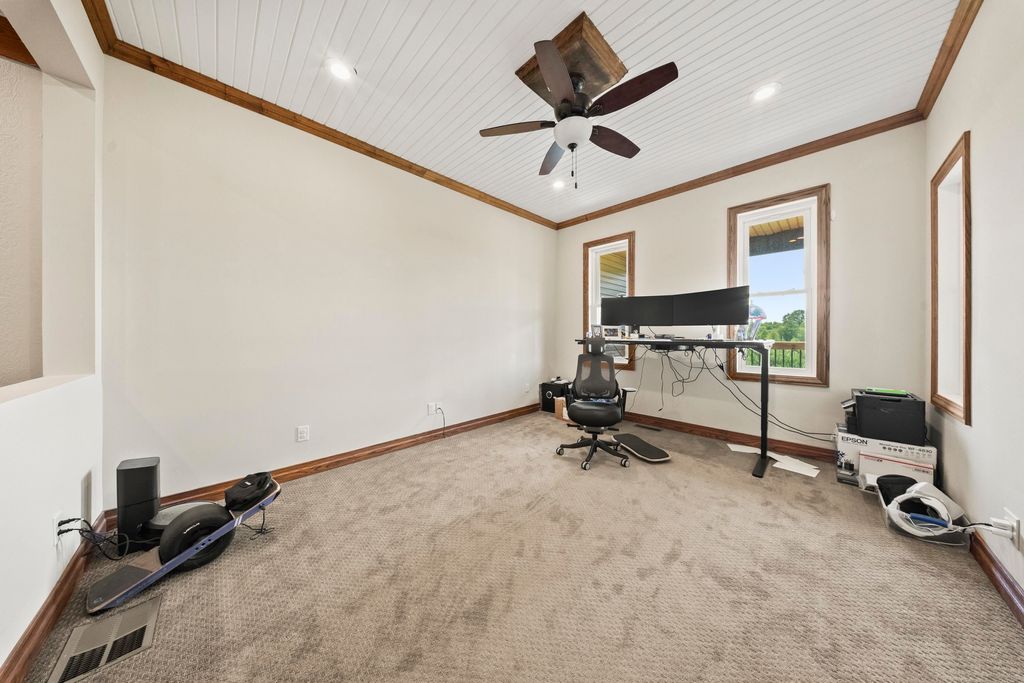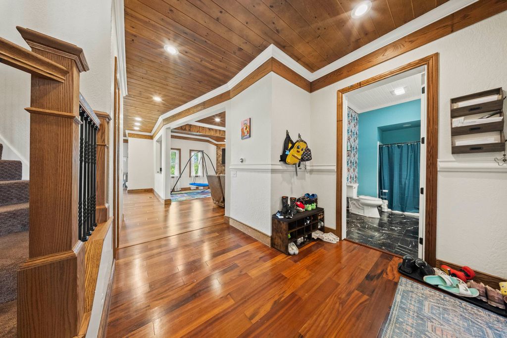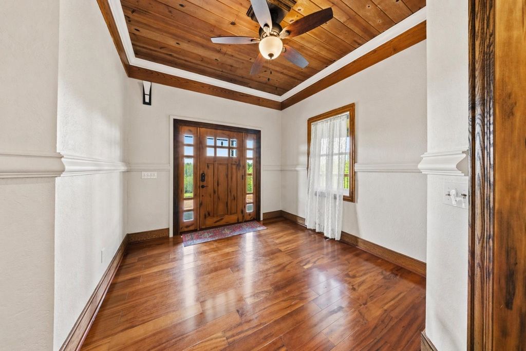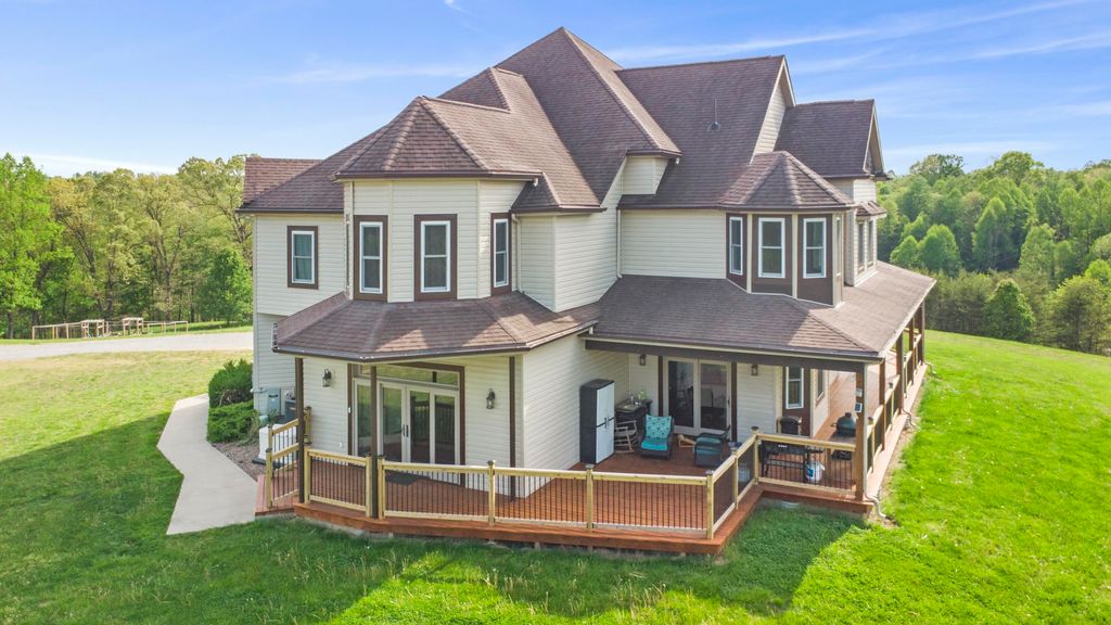 This remarkable home showcases custom craftsmanship and distinctive architectural design throughout. At the heart of the home is a stunning 30-foot rotunda rising above the grand staircase, creating a dramatic focal point that shines across two floors and is complemented by soaring ceilings throughout. Designed for both everyday living and entertaining, the home features multiple flexible-use rooms currently set up as a home office and gym, a spacious gathering room that flows seamlessly into the kitchen, and a formal dining room perfect for hosting. The kitchen offers granite surfaces, an island with bar seating, and great flow for gatherings, with convenient access to the wraparound porch from the kitchen, dining room, and front entry"”making indoor-outdoor entertaining easy. The primary suite offers beautiful wood flooring, walk-in closets, and a spacious bath featuring a soaking tub and custom tile shower. Additional bedrooms are generously sized, each with unique character and features. The second floor includes a study area and a large laundry room with a scenic view. Recent upgrades add efficiency and modern convenience, including all new windows, a whole-home generator, solar power system, boric acid attic insulation, encapsulated crawl space, trenched line for high-speed internet, two EV charging stations in the garage, and a rainwater collection system for gardening. Outside, the large wraparound porch provides the perfect setting for gatherings, while the surrounding property offers privacy, abundant wildlife, and peaceful country living"”just 5 miles from US 52 and Ashland.